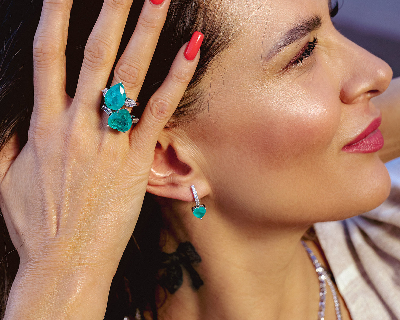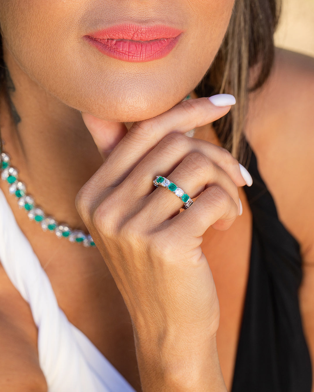 A FULL ETERNITY RING WITH A DROPLET SOLITAIRE